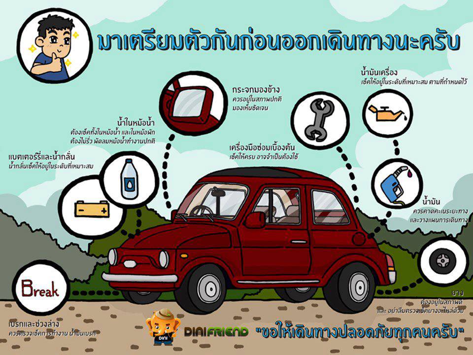 3.เช็คสิ่งที่จำเป็นแบบรูปด้านบนเลย และที่สำคัญล้างรถก่อนเดินทางใกล้ด้วยนะครับเพราะฝุ่นบนกระจกหน้า หลัง หรือกระจกข้างเองอาจจะเป็นบ่อเกิดของอันตรายได้ แล้วก็ไฟหน้า ไฟหลัง ไฟเบรค ควรตรวจเช็คให้ใช้งานได้ปกติ อย่าละเลยเป็นอันขาด